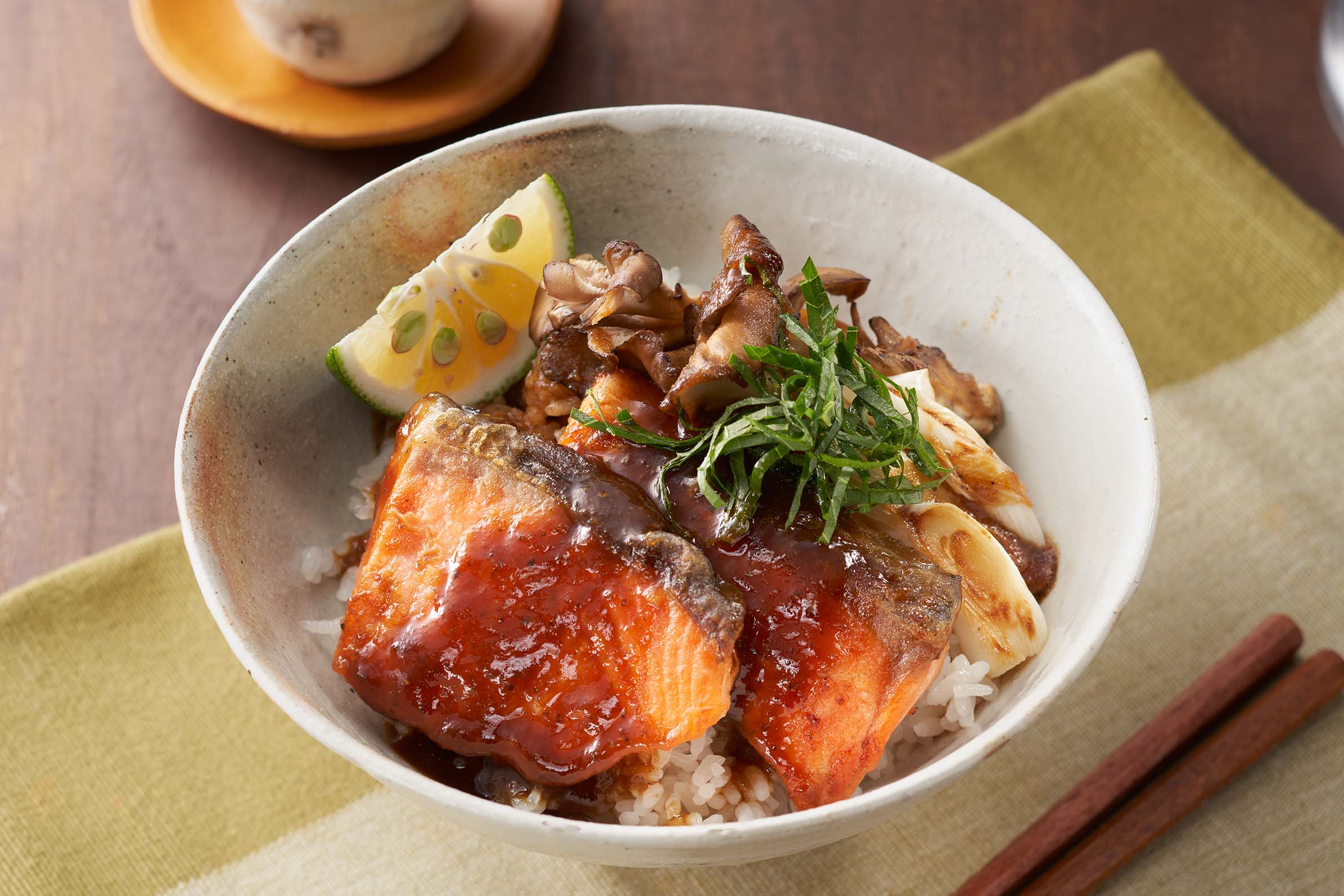 鮭とまいたけの照り焼き丼