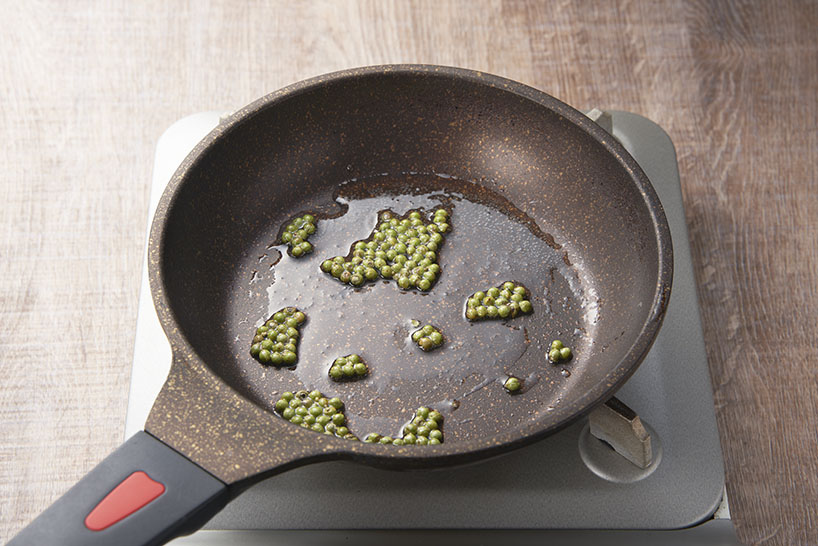 米油に実山椒を加えて温め、香りを油に移し、一旦火からおろして、特級ばら本醸造うまくち醤油、砂糖を加えて軽く煮る。