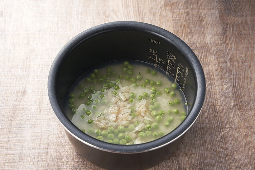 炊飯器に1を入れて、Aの調味料を順に加えて混ぜ合わせる。
